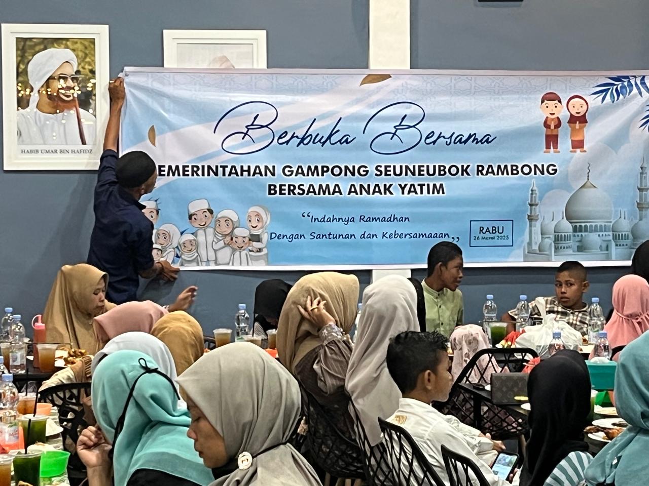 Aceh timur, Pemerintah Gampong Seunebok Rambong, Kecamatan Idi Rayeuk, Aceh timur, Melakukan buka puasa bersama dan sekaligus menyantuni anak yatim serta fakir miskin yang ada di desanya itu.